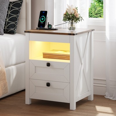 - This nightstand includes a wireless charging station, 2 USB ports, allowing you to charge your phones, watches, and iPads all at once, making your daily life more convenient.