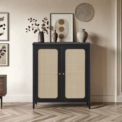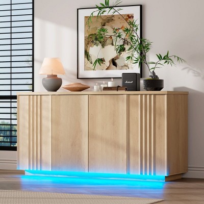 Vlsrka 31.5-Inch Rustic Wood Sideboard with Fluted Doors and Adjustable Shelves – Ideal for Dining Room, Living Area, or Entryway.
