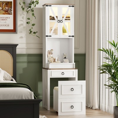 Vlsrka Makeup Vanity Set with LED Lights Flip-up Mirror and Hidden Storage