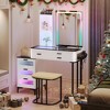 This makeup vanity is the first choice for your beauty station! This is a smart upgrade for any makeup vanity, multi-functional and stylish comes with a mirror and makeup chair, charging station and ample storage space, built-in RGB lighting, to blend your mood into the atmosphere.The RGB light mirror Vanity set is fully equipped. It not only provides a charging station but also comes with RGB lighting 7 colors of LED lights, which bring beautiful and vibrant colors to our room. You can adjust the lighting to create a different atmosphere according to the scene.
