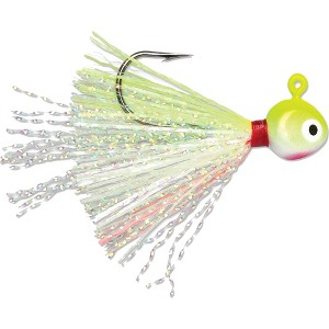 This VMC® exclusive jig head features unique to the market "glow-in-the-dark skirts" and flashabou fibers. This unique combination really grabs the attention of hungry fish. It features a VMC® premium high-carbon steel hook to seal the deal at the strike. Add live bait or plastic trailers for additional temptation. This great walleye jig now comes in crappie sizes!
