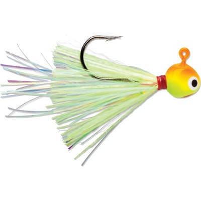 This VMC® exclusive jig head features unique to the market "glow-in-the-dark skirts" and flashabou fibers. This unique combination really grabs the attention of hungry fish. It features a VMC® premium high-carbon steel hook to seal the deal at the strike. Add live bait or plastic trailers for additional temptation. This great walleye jig now comes in crappie sizes!