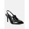 The sandals have an eccentric flair with the amalgamation of two beautiful styles - loafers and sandals. The loafer sandals are gorgeous with the classic loafers vamp and party in the back with the alluring slingback design with stiletto heels. The comfortable cushion insoles cut strain and offer a relaxed fit. Type: Sandals Upper Material: Patent Pleather Outer Sole: TPR Closed Pointed Toe Stiletto Heel Strap Detail On The Vamp Slingback Fastening Elasticated Gussets Comfortable Cushion Insoles Heel Height: 3 inches RCSH5364