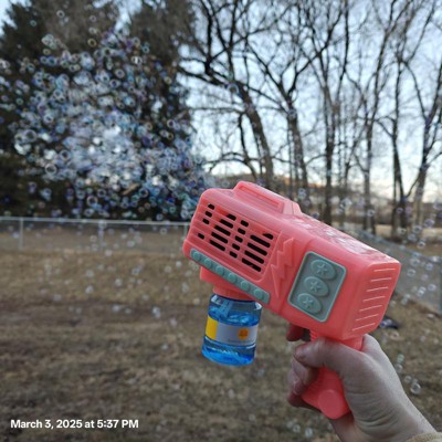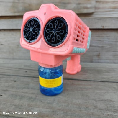 This little bubble blowing gun is absolutely awesome and my niece loves it! She wants to use it every time she comes over to visit. It has a great consistency of bubbles that doesn't get clogged up or needs refilled often. Would highly recommend if you have a youngin who needs some much needed outside time.