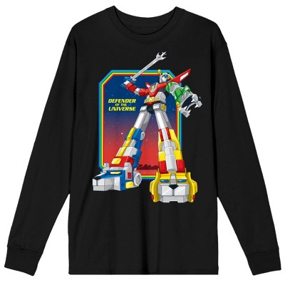 Are you a wannabe astronaut that wants to pilot a giant robot? While you work on that life goal, you can rock out in this Voltron: Defender of the Universe tee. Features a detailed, full-color retro design of Voltron in action with old school logo. Ready for long lasting wear on a comfy 100% charcoal grey cotton t-shirt.