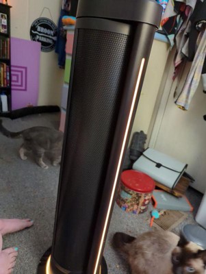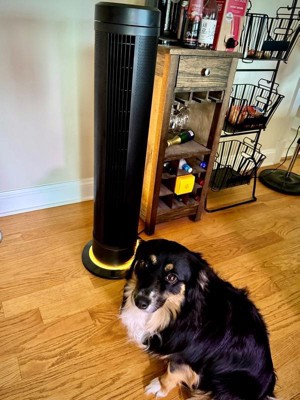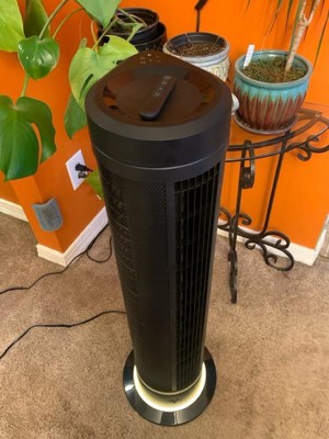 [This review was collected as part of a promotion.] I absolutely love this tower fan! I’ve never owned a fan that worked so well and looked so great. I love that it’s black, it looks classy and modern. It comes with a slim, tiny omnidirectional RF remote that takes up no space and can be kept on top of the fan magnetically. How cool is that?! It has five speeds, all of which work amazingly well. The lowest speed is a soft breeze. The highest is definitely effective for hot weather. It’s powerful at a velocity of 1650 FPM. The air flow is great. It’s quiet on every speed. I sometimes forget it’s on if I’m using the lowest setting. It’s that quiet. The fan has a light! Like, what?! It has 5 levels from bright to off and everything in between. The back and base of the fan glows the loveliest soft yellow. I use the light at night for bed. The light can also be used without the air flow on. The fan can be set stationary or it can be set to rotate at either a 90 degree or a 180 degree oscillation range. This is seriously the best fan I’ve ever owned. If all that isn’t enough, it even comes with a 5 year warranty. I’m so thrilled with it. I recommend it 100%!