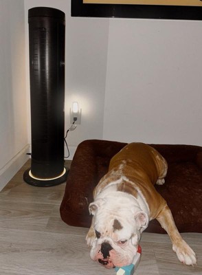 [This review was collected as part of a promotion.] When Influenster sent me this for review, I was stunned when I opened the box. Easily 4-feet high, this fan is stunningly high quality, with actual metal parts and the weight to prove it. I don’t think the light at the base is necessary, but I guess it’s fine. The wind it generates is super impressive, and the full 360° rotation is awesome for large rooms. The remote sensor is not as responsive as I’d like, but we don’t actually use it much so that doesn’t really matter much. All told, this thing is totally great and much higher quality than any fan I’ve ever used. Doggo included for scale.