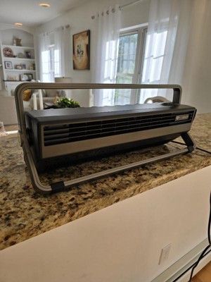 [This review was collected as part of a promotion.] I’ve been keeping this fan in our room on the dresser and have been using it during these warmer spring days we have been having on the east coast. It has 3 settings, and even on the lowest the airflow is amazing, I can feel it all the way across the room. It’s not bulky and does not take up much space. It has carry handles so I can bring it around everywhere that I can plug it into. I’m definitely going to be using it in the summer under my gazebo, as I can easily set it on top of the table. I also love that it’s bidirectional so I can stand it up as well. I would definitely recommend this product.