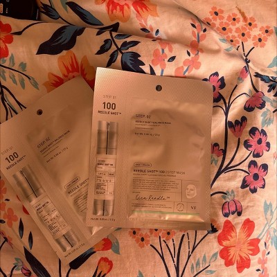 This is a great introductory set for someone who has been curious about the Reedle Shot but didn’t know where to start. It comes with three sheet masks and one Reedle Shot 100 so it’s a great value if you get it on sale. After doing some research, 100 is good for beginners (although I believe they have a 50) and ok for daily use. Once you go up to 300, 700 you can only use them every few days depending on your skin tolerance. Upon application it feels prickly but that means it is working. Then you apply your usual skincare on top and the micro needling effect helps absorb your skincare a lot better. I’ve only used it for a week but I have not had any adverse effects. The box says that it helps with black heads and pores and I’m still trying to figure out how it would.