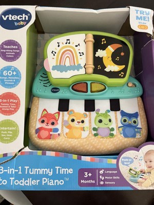[This review was collected as part of a promotion.] This Vtech - 3-in-1 Tummy Time to Toddler Piano has been perfect for my little one. I love that my infant can play with it for tummy time and also while in her jumper. My toddler also loves running around singing and playing the piano. It is a perfect toy. I would definitely recommend this for anyone searching for a tummy time toy.