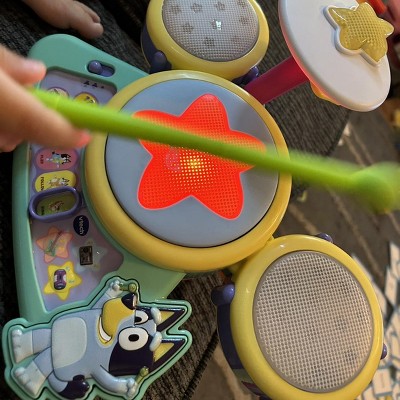 - Put on a show with Bluey and drum along to catchy electronic, country and pop melodies; see the drum pads and cymbal light up