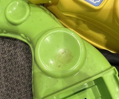 The toy was used and missing pieces. It was dirty and marked up. The basketball net, the panda piece in front of the soccer net and the 2 balls were all missing. The pieces were dirty and sticky.