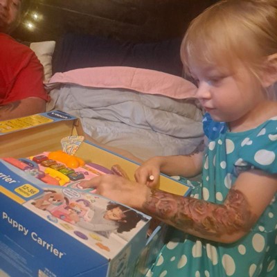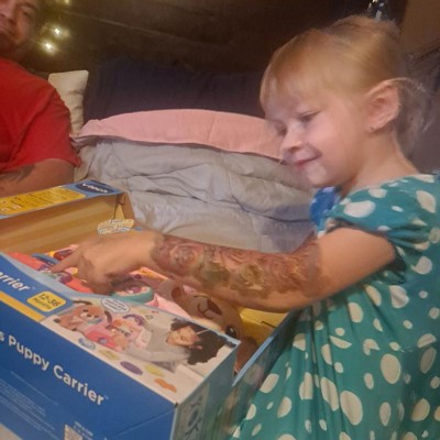 [This review was collected as part of a promotion.] This VTech puppy carrier has kept my daughter happily occupied while I prepare dinner. She loves playing with it and pretending to take care of the puppy as if it were real. The buttons are press able and help her learn colors and practice numbers, making it both fun and educational. The carrier is just the right size for her to carry on her own without any help from me. Love this toy!