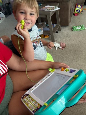 [This review was collected as part of a promotion.] This is such a cute toy! My son absolutely loves it and loves all the things it comes with that teachers to draw. I LOVE that it teaches kids how to write their name so my son can practice on his own