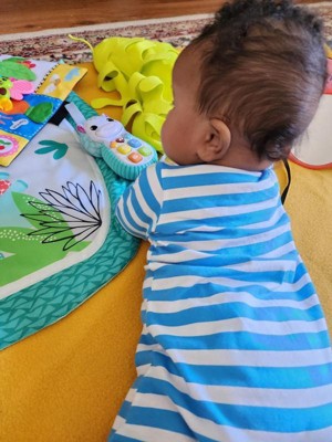 [This review was collected as part of a promotion.] This is a very unique toy for babies! It’s got a plush backside for cuddling and TONS of different sounds to keep a baby’s attention. My baby loves the buttons and all the different modes. I would definitely recommend, especially if you think you have allllll the toys already. This one is truly different!