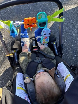 [This review was collected as part of a promotion.] My toddler loves this toy. It’s both plush and interactive, and keeps him busy. The strap at the top is great for attaching for a car seat or other gear. Unlike a lot of baby toys, it is not overly loud, and the tones play only when buttons are pushed - no random loud noises play when the toy is not being used. Overall, my son enjoys this toy, and I can’t recommend it enough.