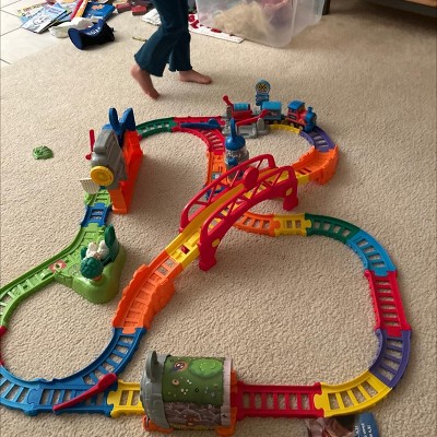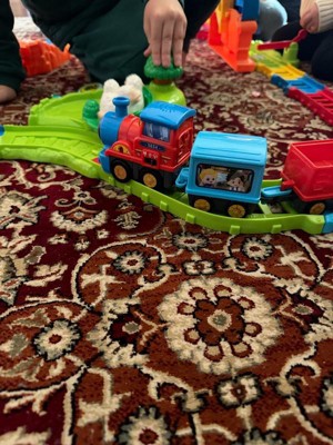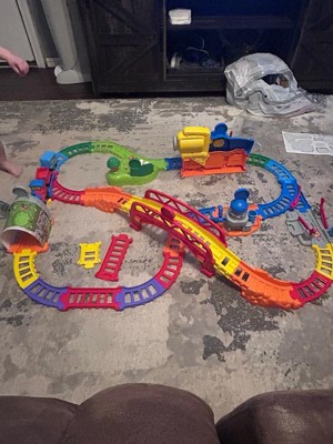 A: Place the Motorized Train on one of the playset’s six SmartPoint® locations to see the Motorized Train’s lights flash and to hear fun sounds, short tunes and phrases