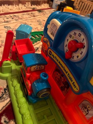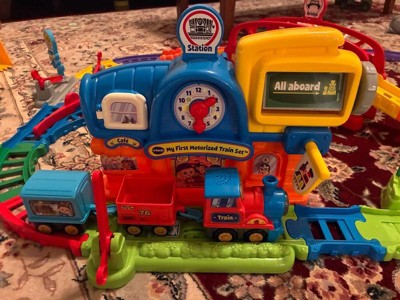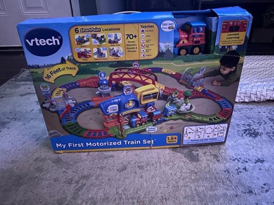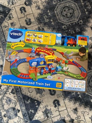 [This review was collected as part of a promotion.] The Vtech My First Motorized Train Set was the perfect Christmas present for my toddler. He absolutely loved the bright colors, sounds, and music. The little motorized train had two train cars with the engine and is super engaging and interactive. He loved how the train announced where it was every time it passed a location. The interactive features of the track provided lots of entertainment. There was an initial bit of setup but it really only took about 20 minutes to put together. This will definitely be a well used toy in our house.