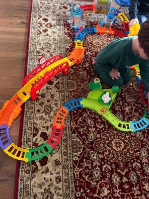 [This review was collected as part of a promotion.] This motorized train set is the best way to have screen free fun with your child. It was pretty easy to set up, allows different paths for your train to go on, and it is a clean design that makes it so much fun. The sounds are realistic and there’s nothing that could hurt a toddler. It’s been a great gift