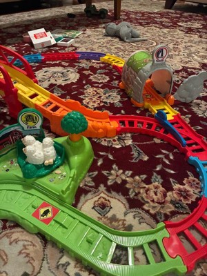 - Spin the schedule at the train station, set the clock, spin the sheep at the farm, pop the beads at the water tower and explore more with 11 kid-powered pieces
