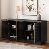 Elevate your space with this stunning 4-door storage cabinet! Features 3D geometric textured doors, premium wood veneer, and sleek metal trim. Adjustable interior shelves provide customizable storage. Push-to-open mechanism maintains clean lines. Perfect for storing kitchen items, office supplies, or living room essentials. Modern design complements any decor style!