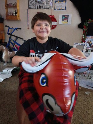 This toy was so much fun this Christmas morning! It blew up so fast and even my 225lb husband could ride it! Now we want more to race them. Haha!
