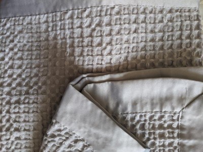 This blanket is eh. I assumed that since it’s labeled “waffle” it would be plush but not in this case. It has numerous threads coming undone along the border and the body of the blanket feels rough. The texture looks beautiful though, so I think it’s better as a decorative piece.
