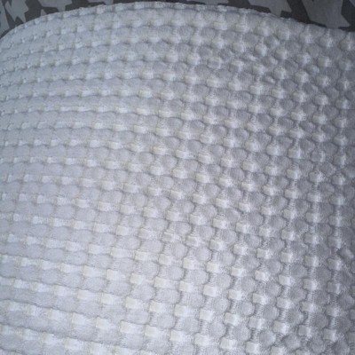 It’s a 100% cotton so it’s very soft and cool for the summer months. The waffle pattern is perfect to still have a contemporary look that I wanted. Perfect for our guest bed. Washed well without being misshapen or shrinking