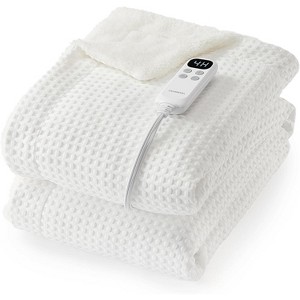 Waffle Heated Throw Blanket, Machine-Washable Electric Throw with LCD Controller