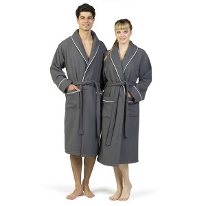 Pamper yourself with our luxurious and fashionable Waffle Terry Bathrobes, woven from soft, 100% genuine Turkish cotton. The absorbent terry inside will keep you immensely dry and exceptionally comfortable. Garnished with delicate contrast color satin trimming on the collar, cuffs and pockets, the waffle woven exterior of these robes exude a sleek and sophisticated look.