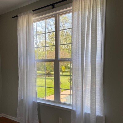 [This review was collected as part of a promotion.] These curtains are such a great material. I was looking for something with more weight than a sheer and these are perfect. I did not want anything heavy or room darkening - but more coverage than a sheer. When closed, these let in just the right amount of light. They are nicely made - so very easy to push back and forth on the rod if you want to open. I really like the texture - hard to see in a picture but the pattern is raised. Gives some body to the material. I washed before hanging and they laundered beautifully. I let them air dry. Came out great. I really like the clean factor. I suffer from allergies- so keeping down the dust will be wonderful. Will be easy care. Just what I needed.