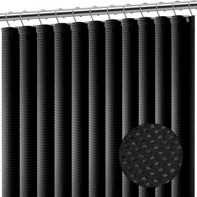 Waffle Weave Shower Curtain Dark Green Cotton Heavyweight Washable Bathroom 72Wx72L