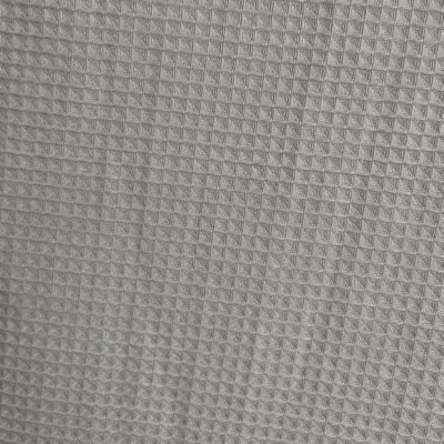 A: The shower curtain features a waffle-weave texture with dobby construction.