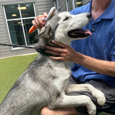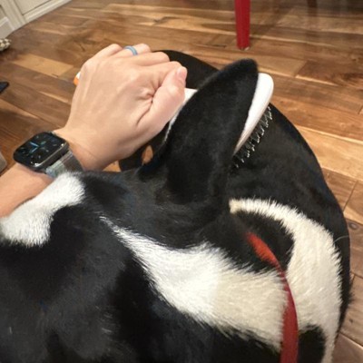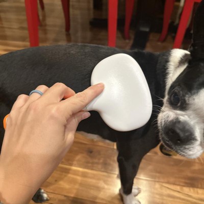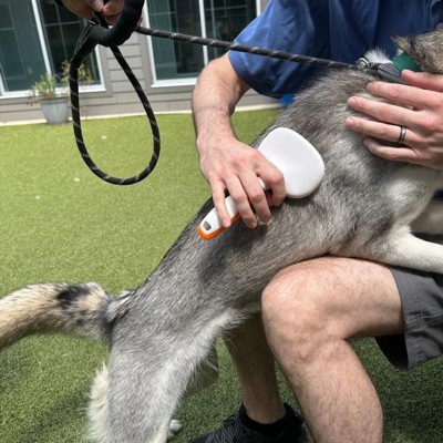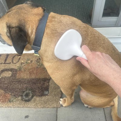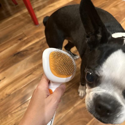 [This review was collected as part of a promotion.] This is a great brush for deshedding and to help get the extra dirt and debris out of your pup. We use this on our poodle (who refused to be photographed) and Boston terrier as our Boston has so much extra hair this helps to get some off so there’s less going onto my couches and such when he jumps up on them. It’s a really good comfort handle brush and lots of bristles to really get smoothing on your pup. I received an incentive to write this review.