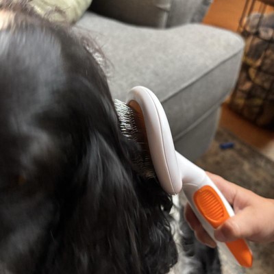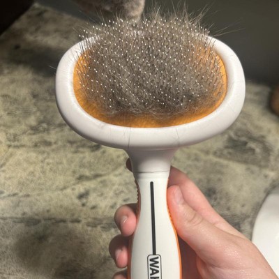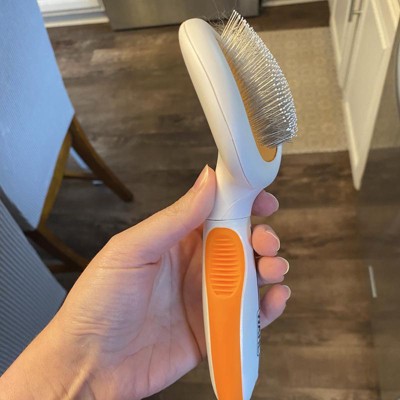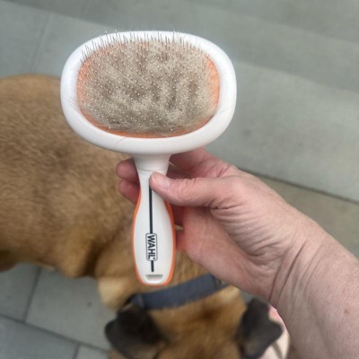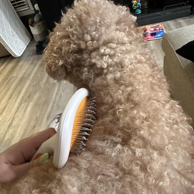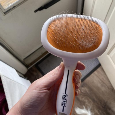 [This review was collected as part of a promotion.] My dog typically hates to be brushed. But, she is a mini poodle and needs to be brushed regularly or she will get horribly matted. I purchased this Wahl brush in the hopes that she would tolerate her daily brushing. Finally, we have a winner. The brush was super comfortable to hold and it worked perfectly on my mini poodle. She did not try to run away once while I was brushing her. I wish I had bought this brush years ago, it is perfect. I received an incentive to write this review.