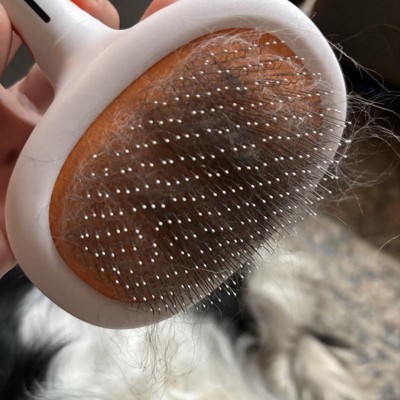 [This review was collected as part of a promotion.] This wahl shedding brush is great, however I wish it was a little deeper. We have a English springer who has a thick coat. This brush is easy for us to all use including my 4 year old. Our dog loves the feeling and sits still while we pamper him. He’s so soft and fluffy following a good brush. It would also be helpful if there was a button to press to get the hair out easier. Overall it’s a good brush and gets the job done. I received an incentive to write this review.