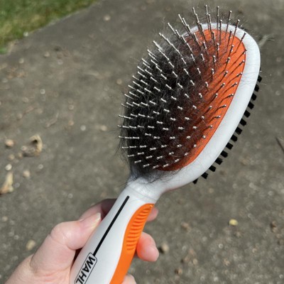 - Double-Sided Design: The Wahl® dog brush features patented double-stack stainless steel pins for removing loose fur and tangles, plus a soft nylon bristle side providing a shiny, smooth coat with natural oils.