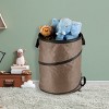 - Keep your campsite, yard, or RV tidy with this camping trash can collapsible bin that features a built-in spring that allows it to pop up to full height in seconds