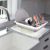- Breeze through campsite clean-up with this space saving collapsible dish drying rack, which features built-in drain holes and an included tray to speed up dish drying while containing drips