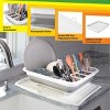 - The dish drying rack includes a removable utensil holder that snaps in place to keep your forks, spoons, and cooking utensils organized while they dry