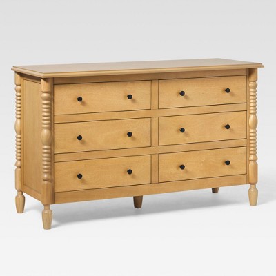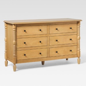 Walker Edison Easy Assembly Solid Wood 5 Drawer Spindle Chest Natural 6-Drawer
