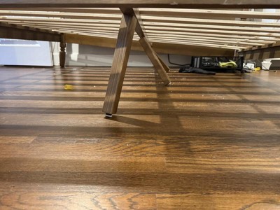 [This review was collected as part of a promotion.] This is a great bed frame! It’s made of quality wood. It looks really nice! It’s very sturdy! It took me and 1 other person roughly 1 hour to assemble it. Anybody can do it. I’m pretty advanced at diy projects but I have confidence that anybody can do it. It’s made of real wood where it matters and high quality wood veneer other places. It’s a very classy looking bed frame. The instructions are very easy to follow. It does not require a box spring under the mattress which is pretty nice. It sits up high enough off the ground that you can have plenty of storage underneath for a lot of things. Laying on the bed after complete assembly feels very nice and sturdy! No noises or creaking at all. I’m very impressed with this bed! Excellent product! I have high confidence in this brand now!
