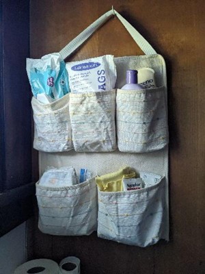 Store and organize your little one's daily essentials with this Wall Hanging Storage with Slub Stitching from cloud island™. This wall hanging storage is decorated with soft pink, blue and yellow slub stitching on a cream backdrop for sweet and dainty style. This multipurpose fabric storage rack designed with five pocket compartments is great for stowing soft toys, clothing, bath items, and other baby essentials. Plus, it comes with an attached top handle allows for easy hanging.