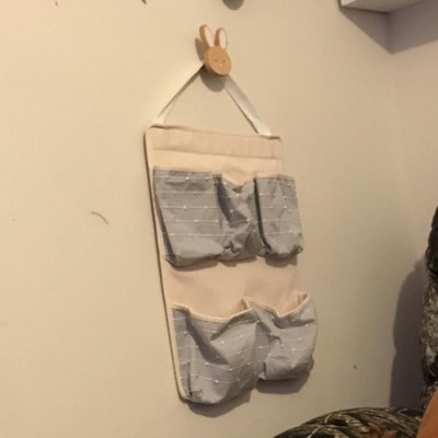 Hold a variety of baby items in this Wall Hanging Storage with Slub Stitching from cloud island™. This wall hanging storage is decorated with white slub stitching on a gray backdrop for sweet and dainty style. This multipurpose fabric storage rack designed with five pocket compartments is great for stowing soft toys, clothing, bath items, and other baby essentials. Plus, it comes with an attached top handle allows for easy hanging.