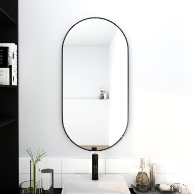 [40*30 inches black oval bathroom wall mirror]: With innovative design, the mirror exudes a more luxurious style within a minimalist 0.02-inch narrow metal frame, enhancing its linear aesthetic. We hope this new design of oval bathroom mirror will surpass the classics and add a touch of luxury to your room.