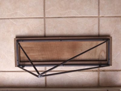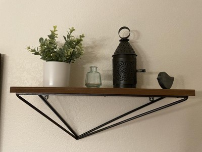 Wall Mount Floating Shelf with Diamond Shaped Iron Bracket Brown - Danya B.: Modern Pine Wood, Metal Frame