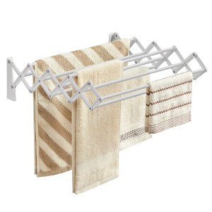 - [Space-Saving Drying Solution] Short on floor space? Think vertical. With this wall-mounted, accordion-style drying rack, you can transform your unused wall into a practical drying area, saving precious floor space and making drying a breeze