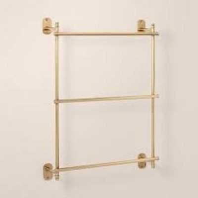 Organize your bathroom towels in style with this Wall-Mounted Brass Ladder Towel Rack from Hearth & Hand™ with Magnolia. This ladder-style towel rack features a wall mountable design with three bars for hanging your bath towels and more in one place. Made from metal in a lacquered brass finish, it easily coordinates with a wide range of bath decor.