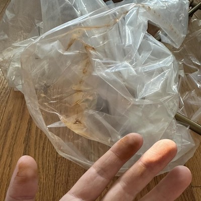 Mine was missing all of the hardware and had black scuffs on the metal.
