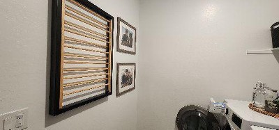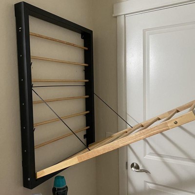 - Wall-mounted drying rack makes a space-saving laundry solution